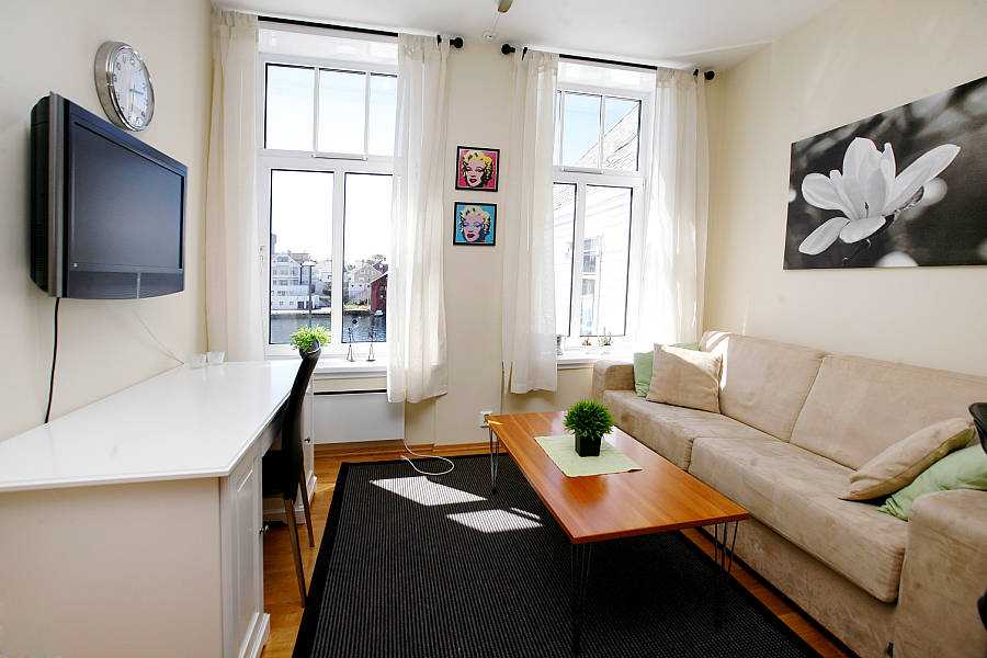 Если есть место, можно установить высокий и узкий шкаф, а также компактную и вместительную тумбочку. Телевизор рекомендуется разместить на стене.