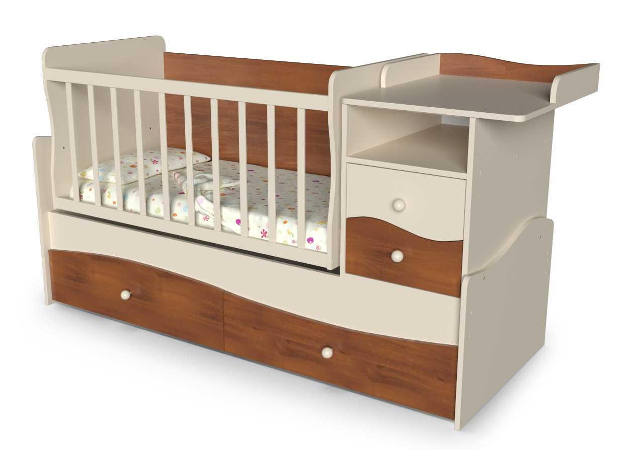 Детские кроватки-трансформеры комплектуются дополнительно столиками для пеленания, комодом с выдвижными ящиками, где можно хранить детские вещи. Конструкции дополняют светильниками или балдахинами. Для самых маленьких кроватки снабжаются специальным механизмом-маятником. Автоматический режим качания облегчает уход за ребенком.