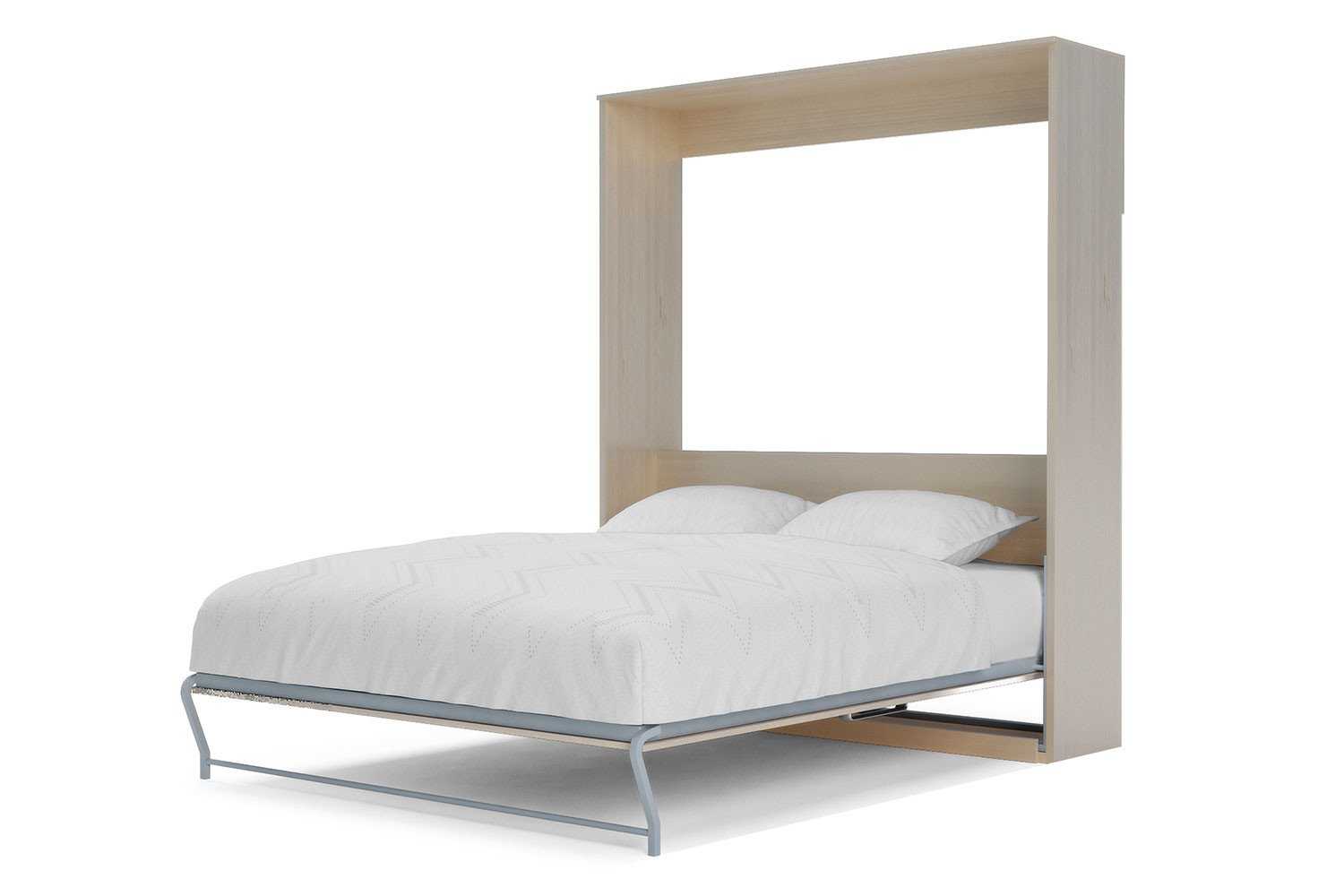 В сложенном состоянии кровать имеет вид обычного фасада шкафа. Лицевая сторона может быть декорирована зеркалами, дверцами. Чтобы разложить изделие, надо потянуть за верхний край матраса и опустить на пол. По сравнению с другими моделями, откидной вариант занимает много места, габариты максимально приближены к стационарным кроватям.