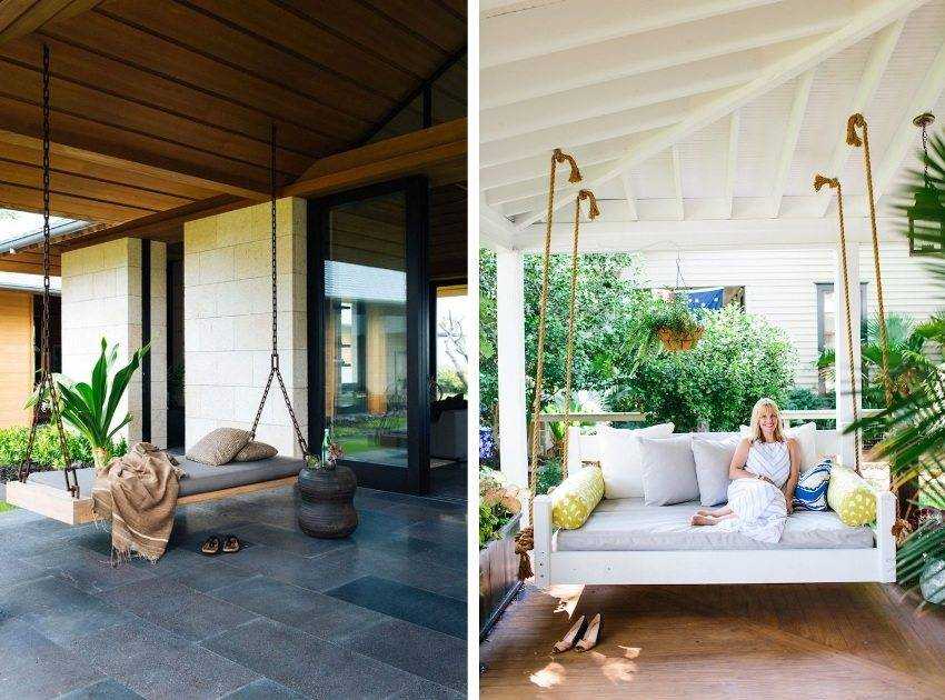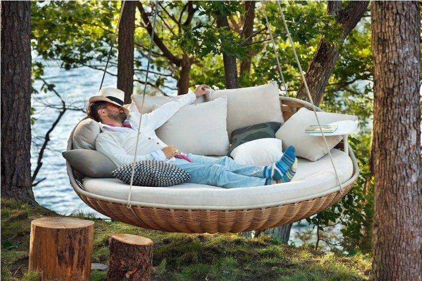 Полезной опцией в ряде случаев оказывается раскладка с отходом спинки назад. Тогда получается плоская, пусть и подвешенная в воздухе, кровать. На садовых угодьях очень ценным дополнением часто бывает тканевая крыша. Благодаря ей можно спокойно спать даже днем, когда солнце неистово заливает все своими лучами. Скамеечный тип хорош ввиду большой вместимости и присутствия в комплекте москитной сетки по умолчанию.