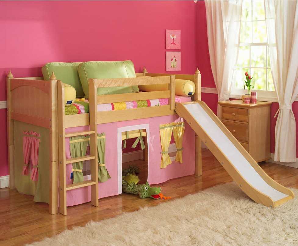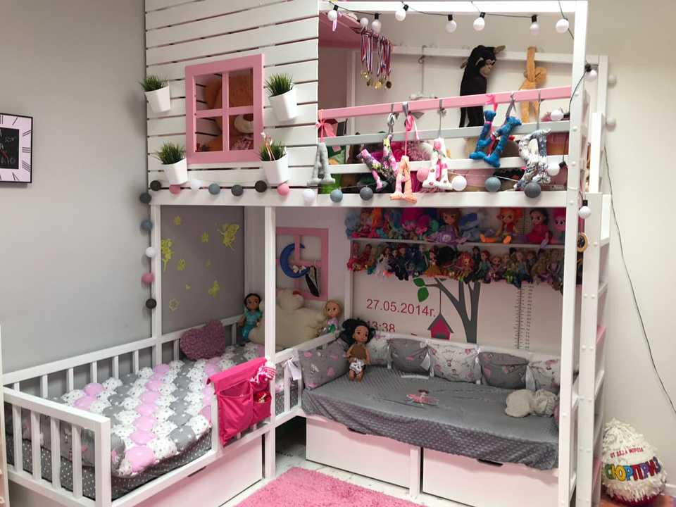 - Наиболее популярны двухъярусные с игровым комплексом. Он может располагаться как наверху, так и внизу. Это отличный вариант для активных детей, любящих игры, а также для семей, уделяющих внимания физической нагрузке. Подобные модели вызывают неописуемый восторг у детей и являются самыми любимыми.