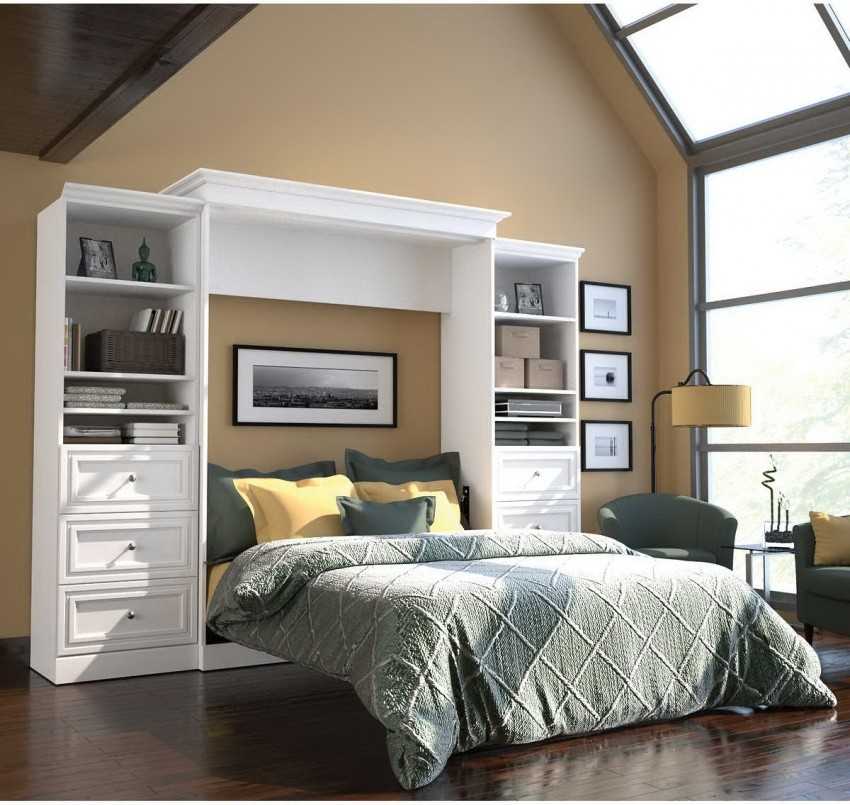 Матрас, обычный или ортопедический, стоит приобрести сразу же, чтобы проверять размеры рамы кровати и шкафа. Подушки, как правило, хранятся в шкафу или в комоде, а не на матрасе, когда он скрыт.