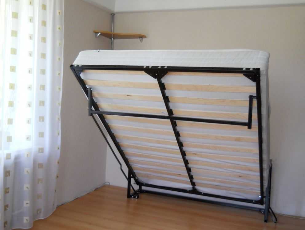 Механизм подъема матраса во многом зависит от типа кровати. Если эта кровать стационарная, на ней скорей всего будет подъемный механизм виктория, для которого применяют газовые амортизаторы или устройства на витых пружинах. Для встраиваемых кроватей используют механизм на откидных петлях, конструкция которого может отличатся в зависимости от направления складывания.