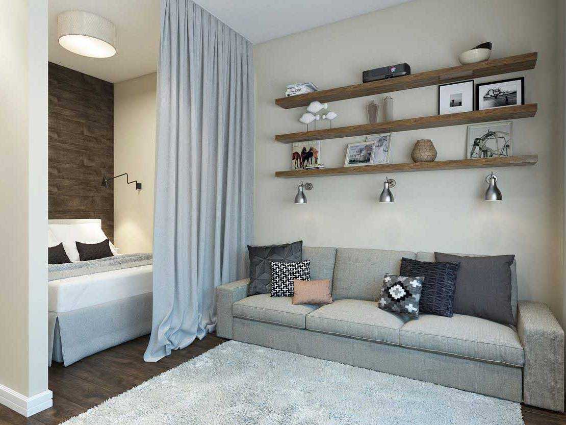 - Временная перегородка – если обитатели жилища любят перемены в интерьере, создать уютную нишу можно с помощью мебели. Шкаф, ширма или воздушная перегородка с несколькими полочками помогут выделить зону для сна. От них легко будет избавиться, когда изменятся потребности жителей или просто захочется освежить обстановку.