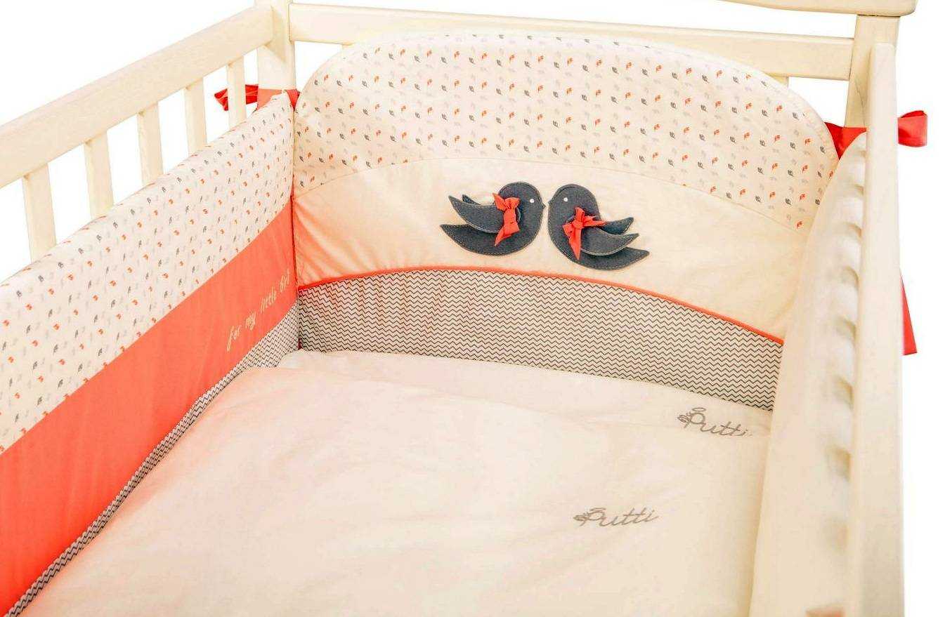 Постельные принадлежности и бортики для новорожденных прослужат дольше, если все швы выполнены ровной строчкой, отсутствуют торчащие нитки, на комплекте нет рюшей, отверстия которых будут притягивать тоненькие пальчики малыша.