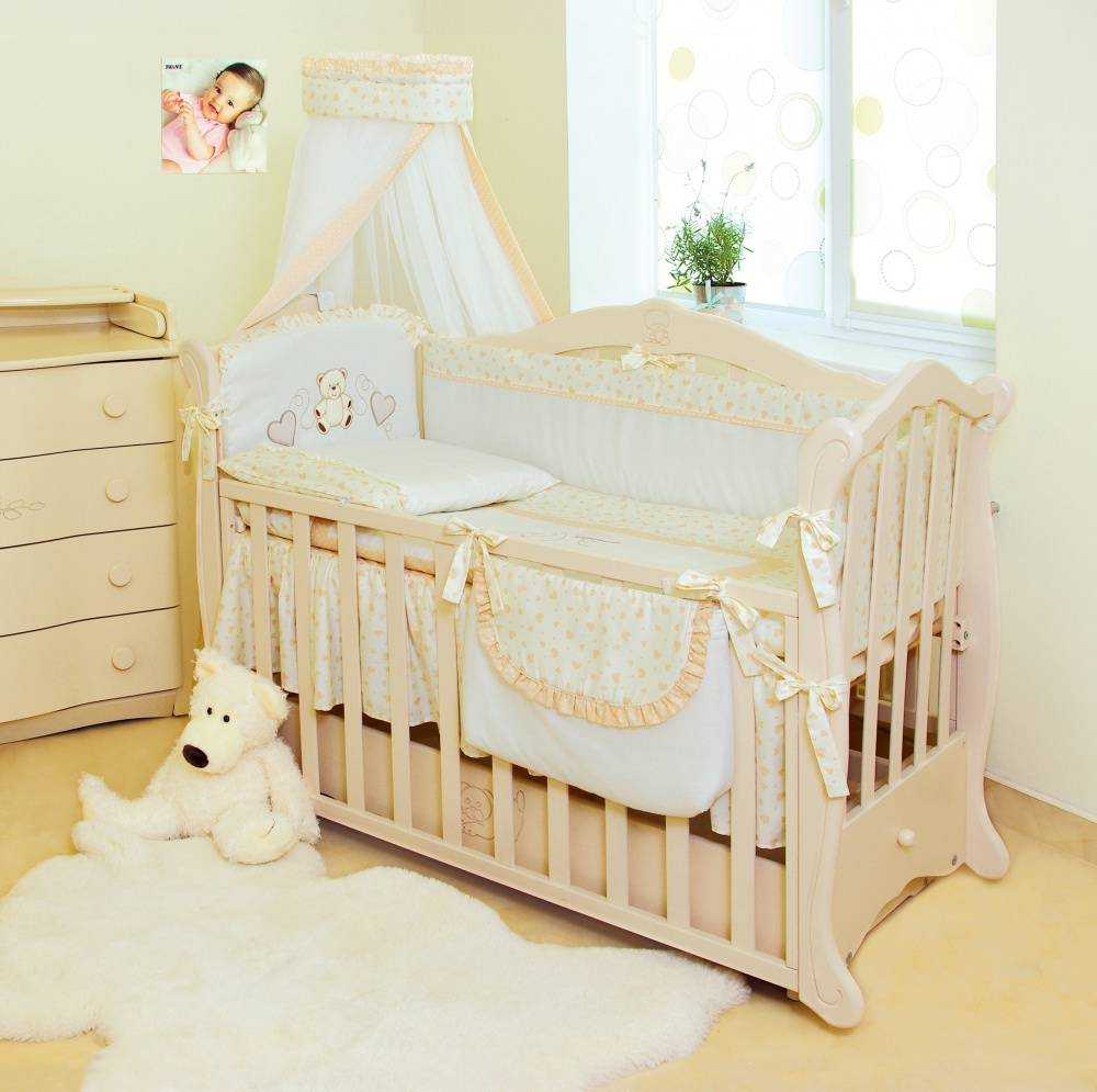 Для детской кроватки предпочтительнее приобретать комплект, для изготовления которого использовалась: