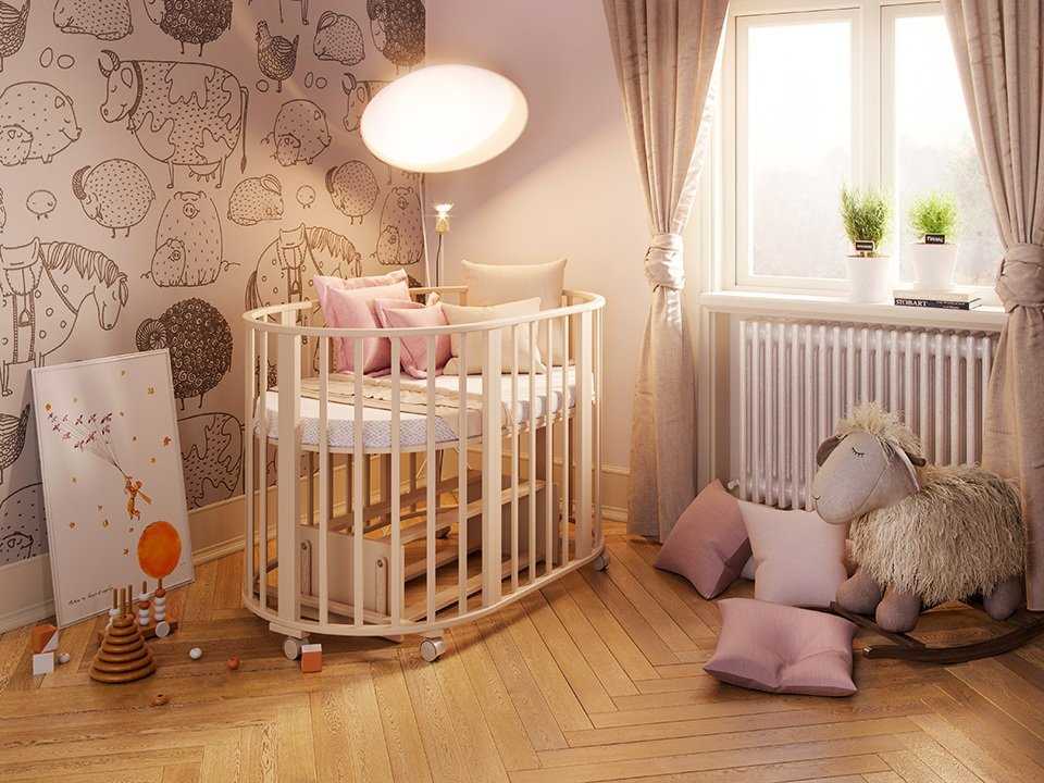 - Кроватки для детей до трёх лет при необходимости приставляют к постели родителей, что удобно для мамы и спокойнее для ребёнка.