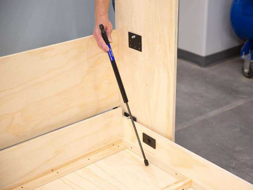 Чтобы короб, встроенный в каркас, без проблем опускался и поднимался, необходимо установить подъемный механизм.
