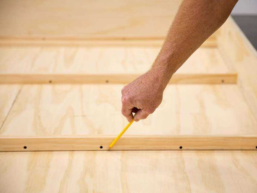 Разница в диагоналях не должна быть больше 3 мм, если у вас получилось больше, поочередно надавите на углы каркаса, чтобы придать ему форму правильного прямоугольника.