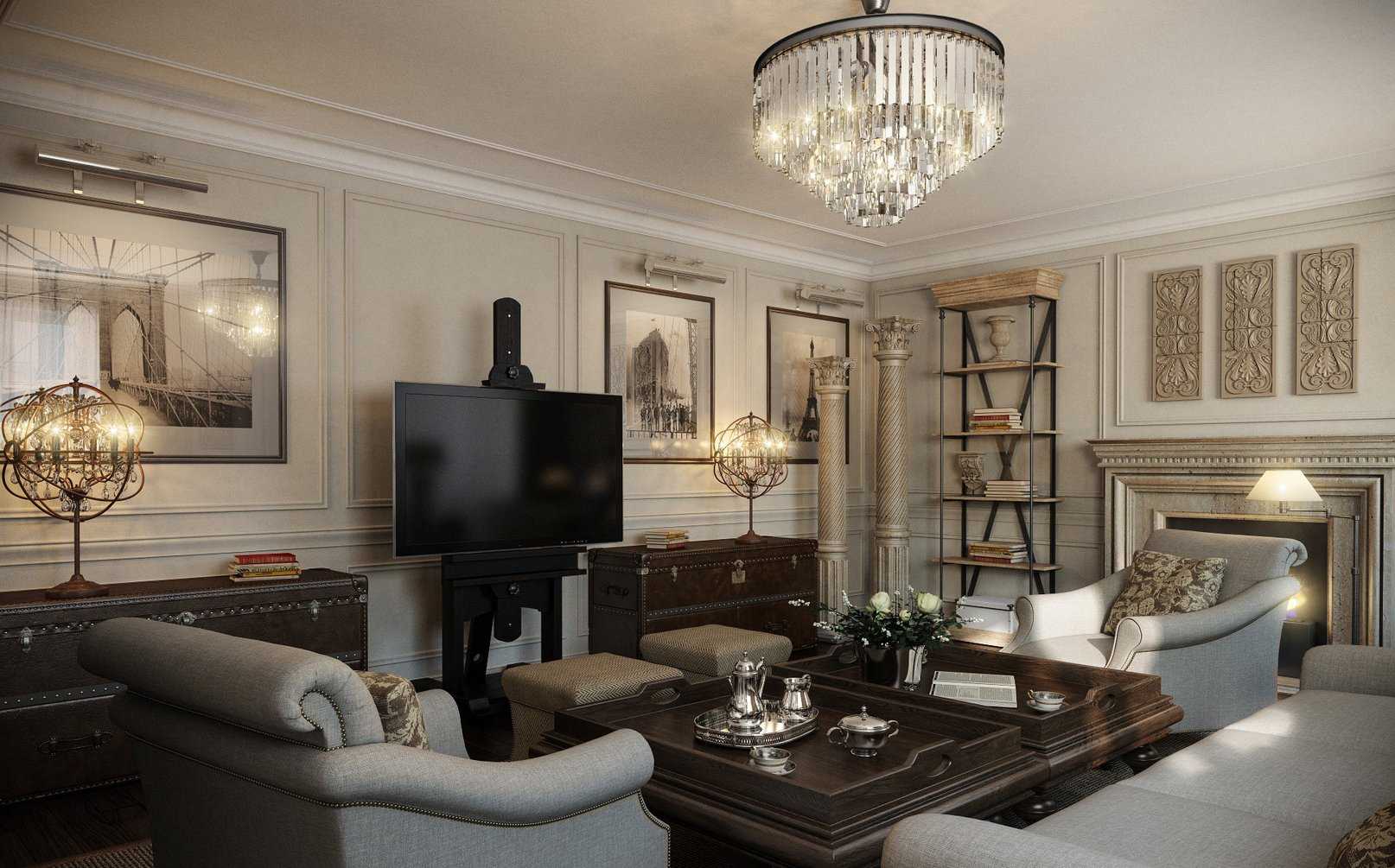 В любой комнате нельзя допускать ошибок в построении освещения, когда в дальних углах появляются глубокие тени. Гостиная должна освещаться минимум тремя источниками света, которые расположены в разных зонах или на разных уровнях