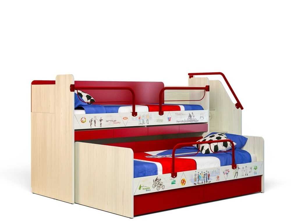 Данная модель примечательна тем, что имеет раздельные спальные места. Выкатывающийся ярус не прикрепляется к верхнему. Поэтому его легко и удобно можно выдвигать и ставить в понравившееся место в квартире. Такая модель будет более практичной. Вы получаете две кровати в одной.