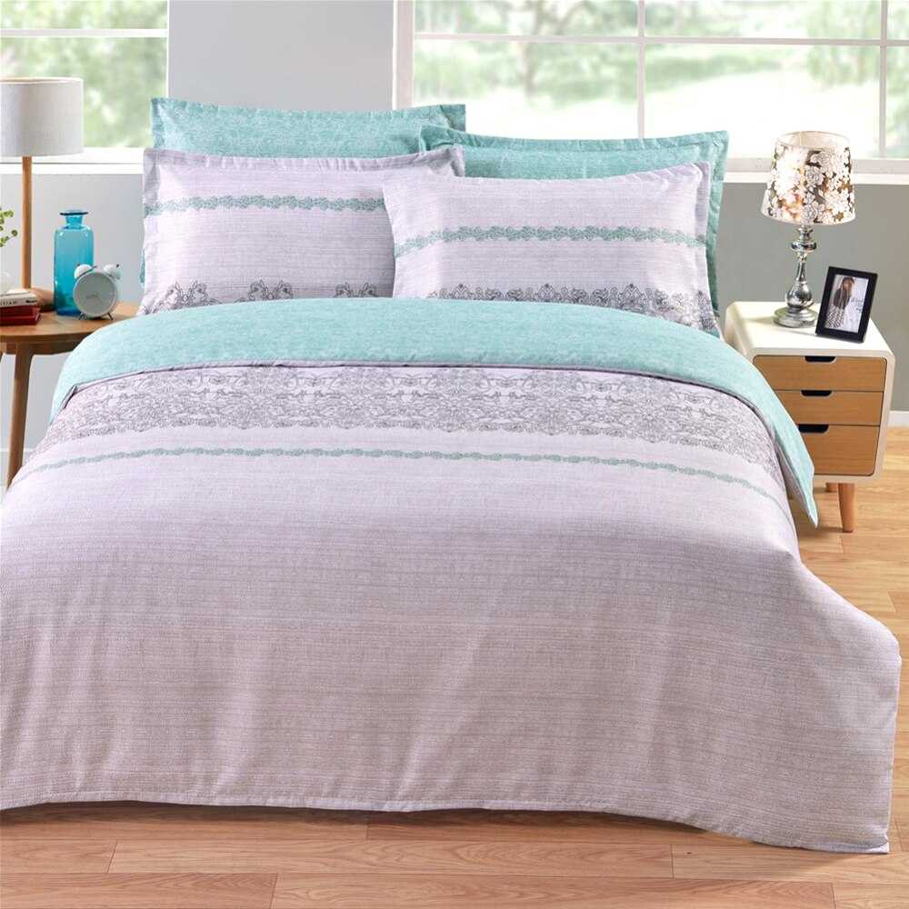 Одеяло помещается в центр спального места. При этом должно остаться место для подушек.
