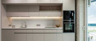 На сегодняшний день весьма популярными является трехъярусная кухня под потолок. Такой дизайн способен создать