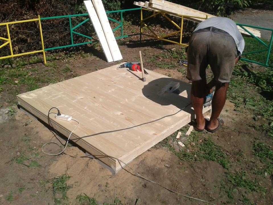 Необходимо с помощью досок зашить полностью каркас, чтобы получился ровный пол.