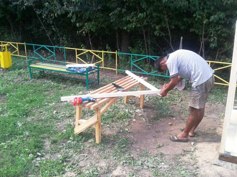 Или вот еще хороший пример. Все, понятно, зависит от исходного материала, если ваша кроватка хорошо сохранилась, то и с изготовлением скамейки проблем не будет. Сначала разберите кроватку, посмотрите, все ли можно использовать. Отпилите нужные детали и соберите. Все можно сделать только при помощи клея и струбцин. Порядок сборки уже показан на других примерах, все детские кроватки приблизительно одной конструкции, могут немного отличатся размеры. Подходите к делу творчески, детская скамейка, это не самый сложный проект.