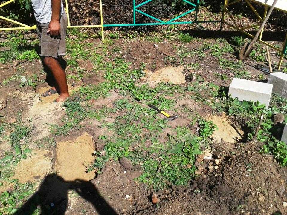 На нужном месте отмечаются с помощью каркаса 4 угловые точки, которые будут служить местом для фундаментных блоков.
