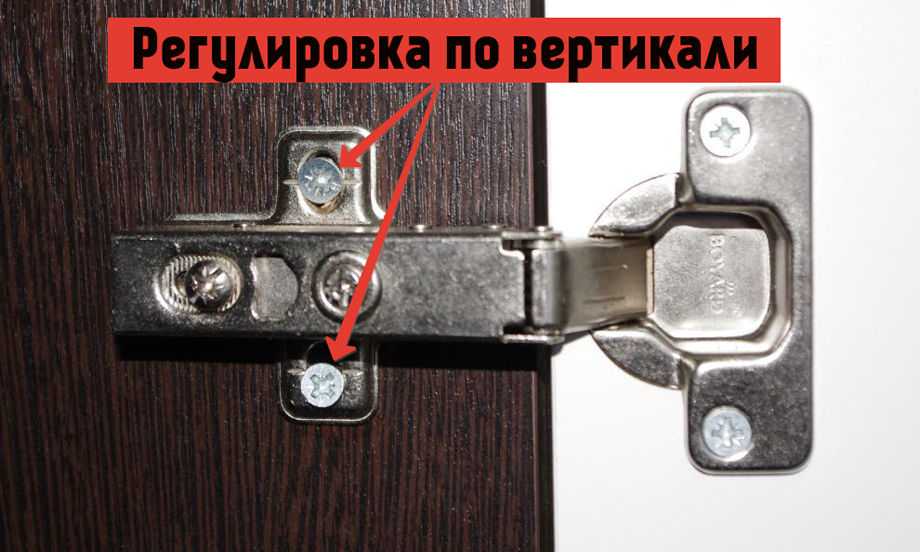 Регулировку мебельной петли начинают выполнять с корректировки вертикального положения.