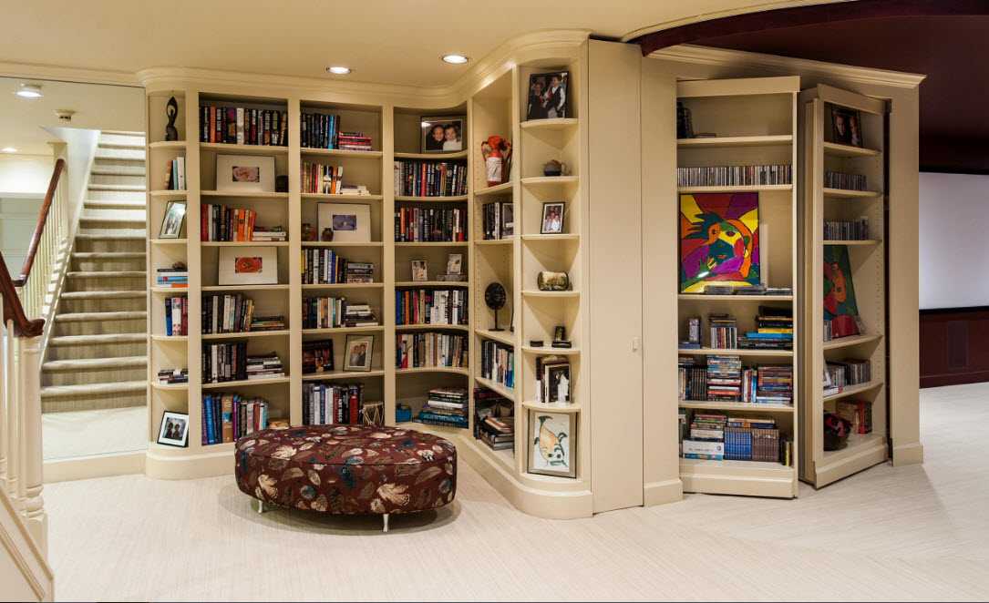 В первую очередь шкафы библиотеки предназначены для хранения книг и рукописей. Там же можно держать медиатеку и фильмотеку. Шкаф может заменить межкомнатные двери или послужить потайными межкомнатными дверьми. Подобная мебель выполняет еще ряд функций:
