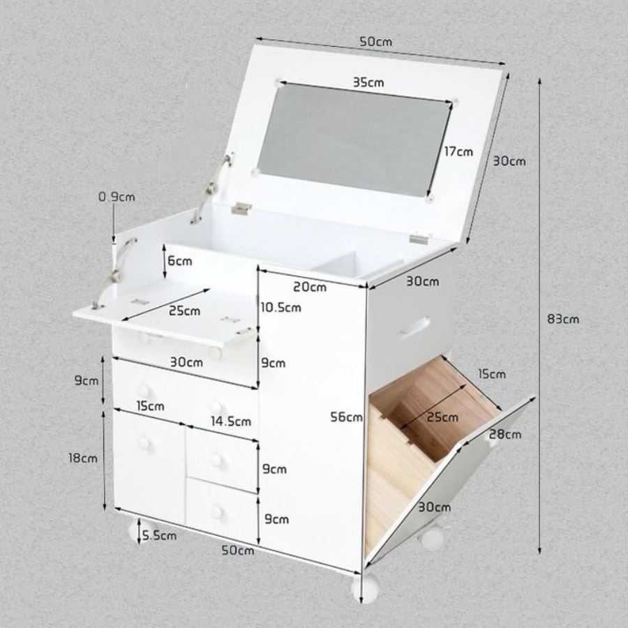 Настольные шкафчики для косметики, несмотря на свои небольшие габариты, могут быть довольно вместительными. Оптимальные размеры для такого изделия: 26—30 см в длину, 20—25 см в высоту и в глубину. Конечно, при желании можно приобрести комодик и меньших, и больших размеров.