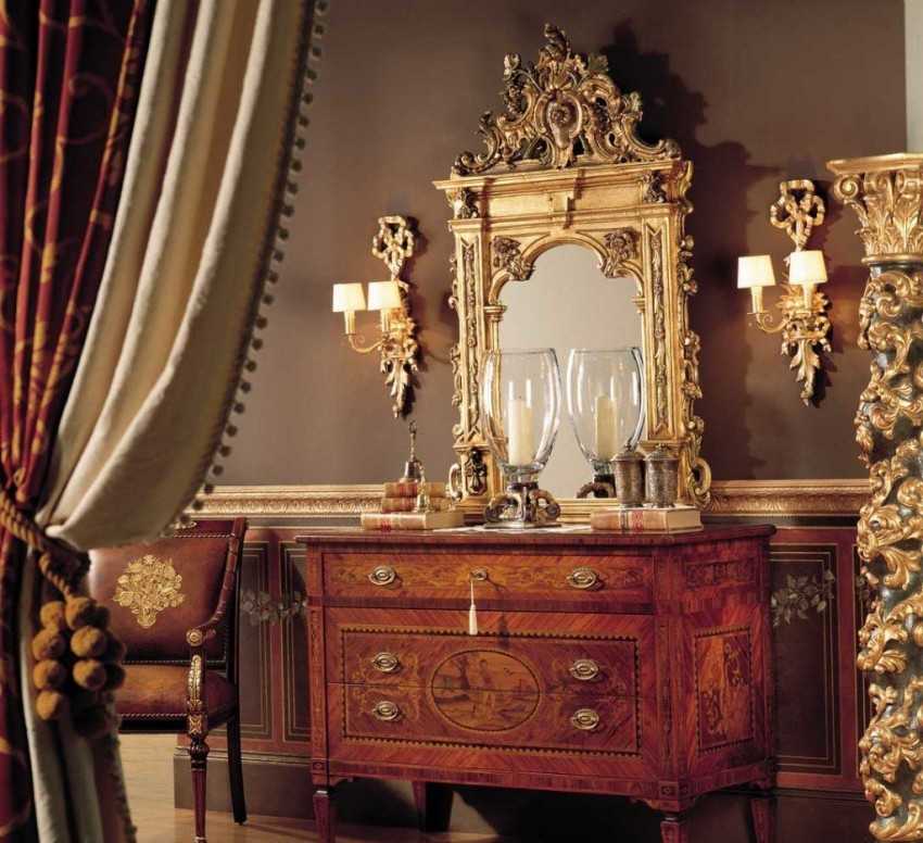И конечно экстравагантные и эксклюзивные комоды изготавливаются из камня, ударопрочных зеркал, стекол, дорогих пород дерева. Могут иметь вставки из кожи, серебра и золота, но эти предметы не очень просто оживить в готовом интерьере чаще приходиться интерьер подстраивать под них.