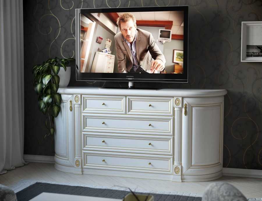 - радиусные — эти изделия обладают криволинейные формы, которые максимально приближены к эллипсу или полукругу. При большой площади комод этой формы может включать вогнутые и выпуклые поверхности. Он отлично впишется в современный интерьер в стиле модерн или хай-тек;