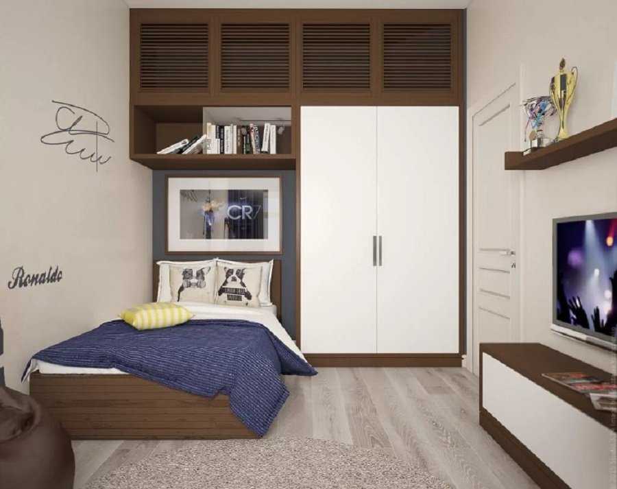 Полутороспальная кровать для подростка возле шкафа в спальне