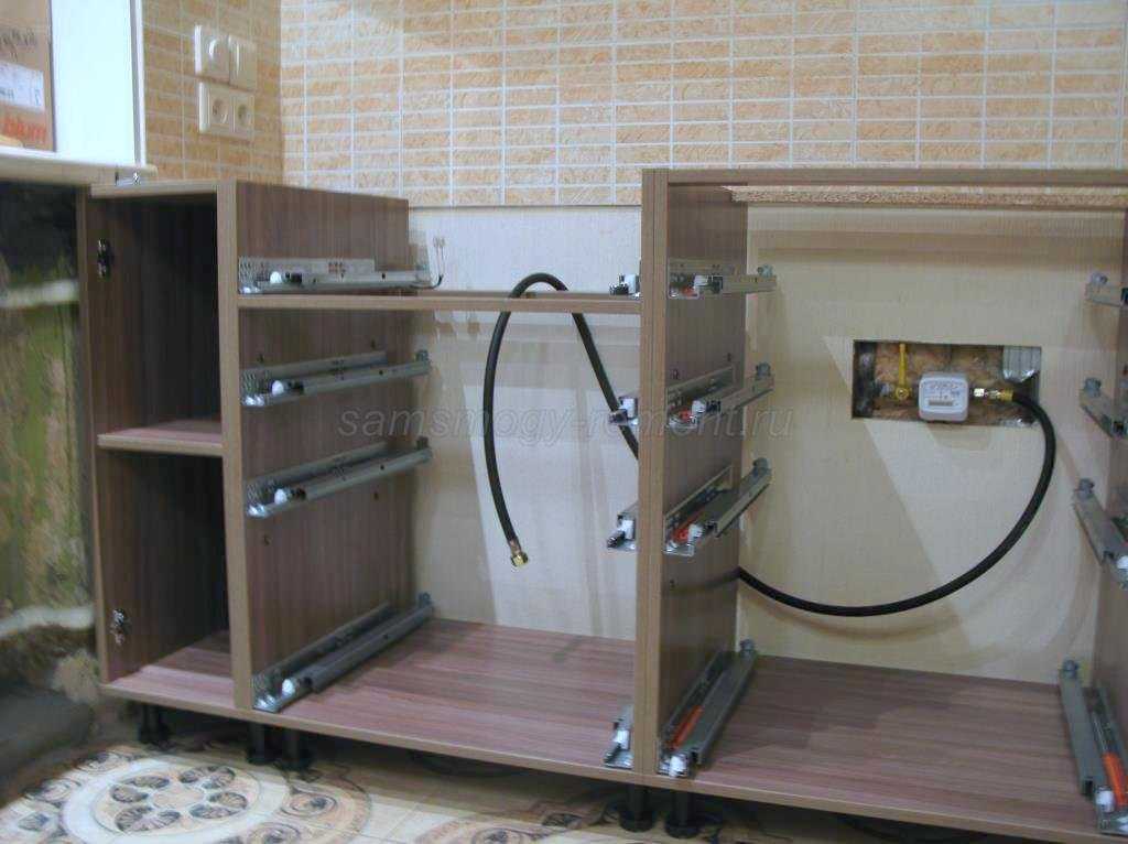 В мойках планки устанавливаются вертикально – чтобы не мешать врезу мойки. Специфичный шкаф-тумба под встройку духового шкафа установки планок не требует.