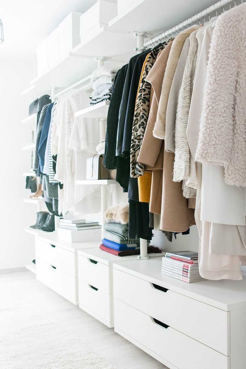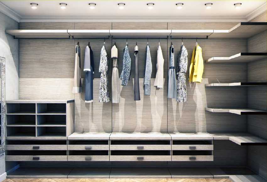 Гардеробная комната должна удовлетворять вашим потребностям, потому к проектированию стоит подходить после анализа количества вещей. Понимание общего объема вещей для хранения, поможет правильно рассчитать необходимое количество полок.