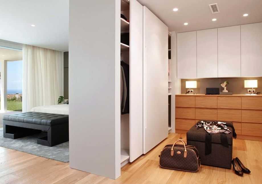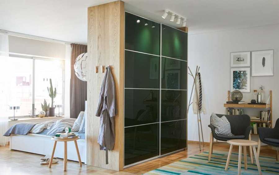 В роли небольшой перегородки сможет выступить обычный шкаф-купе либо модель с распашными дверцами