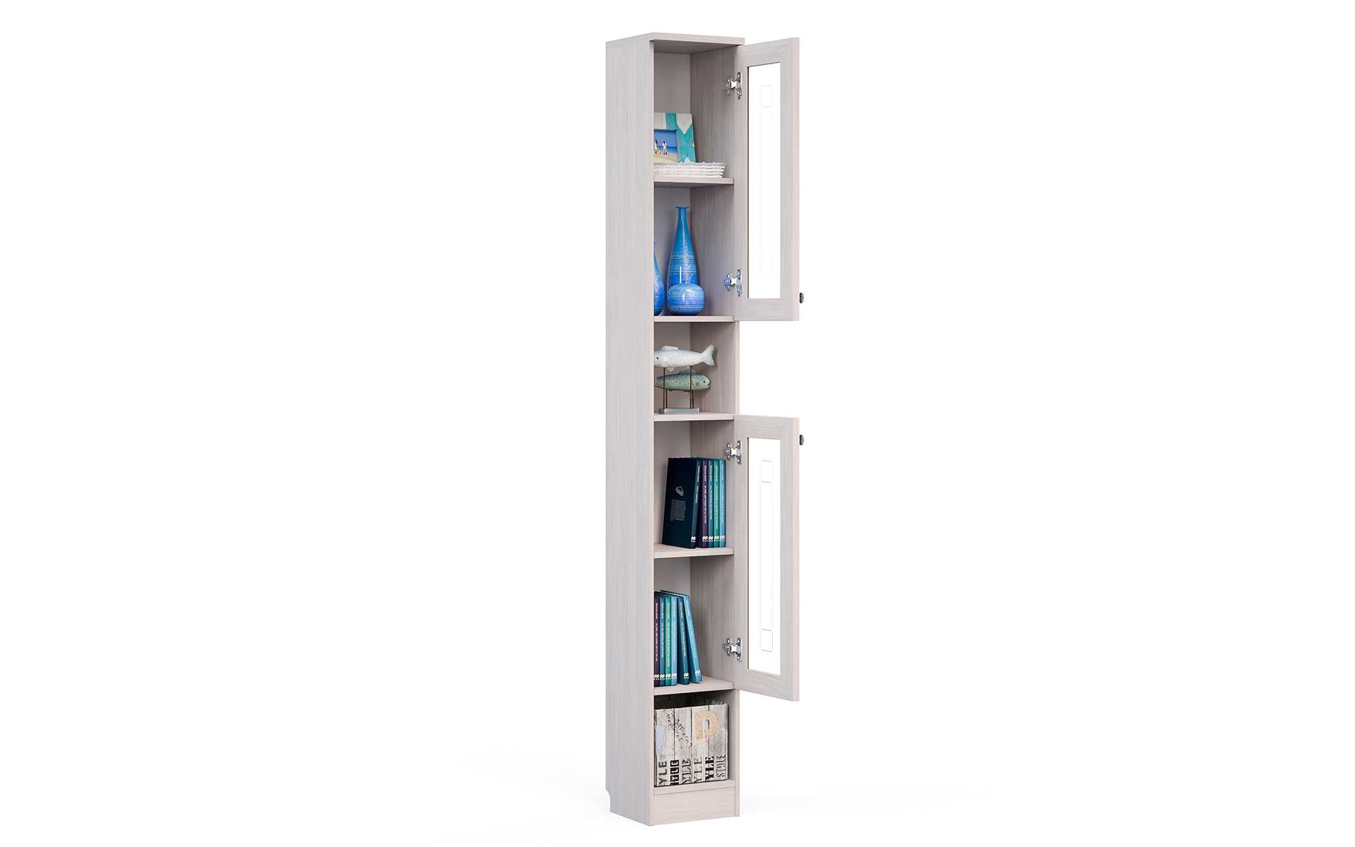 Такой вариант отлично подходит для маленьких помещений, так как визуально придает ему больше пространства. Пожалуй, единственным минусом является то, что все содержимое не скрыто от посторонних глаз. Но этого также можно избежать, если приобрести модели из матового или тонированного стекла.