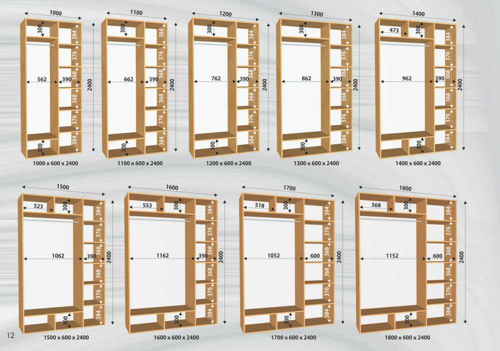 Количество полок, секций и размеры мебели зависят от объема внутреннего пространства.