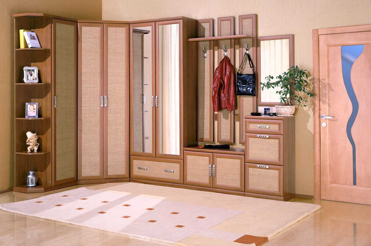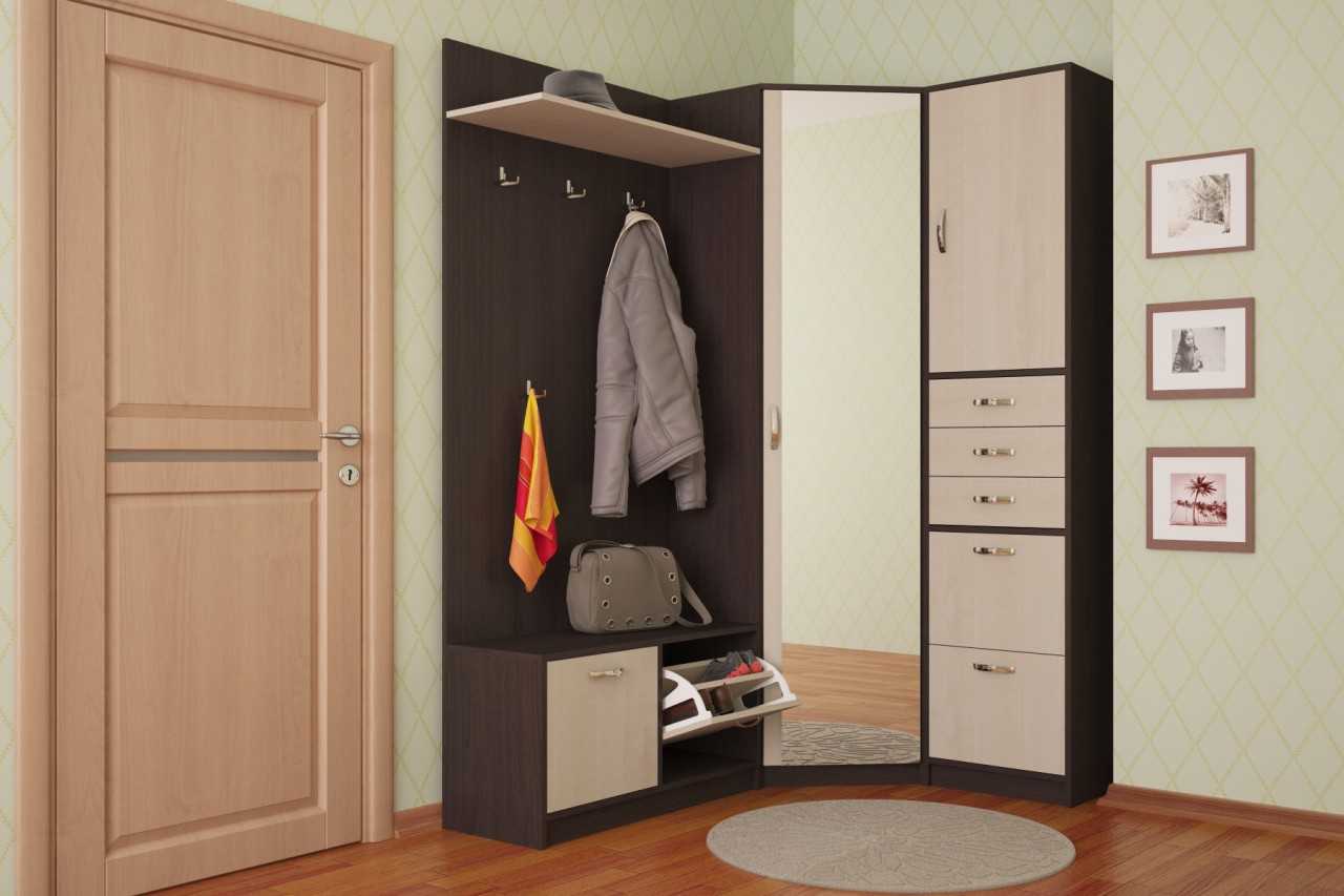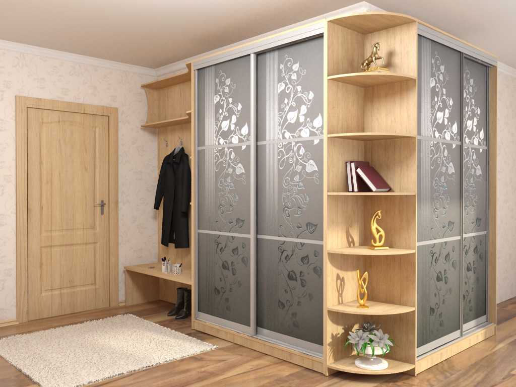Если в прихожей нет возможности смонтировать в углу обычный шкаф, изготавливают угловой модуль, который крепится прямо к стене.