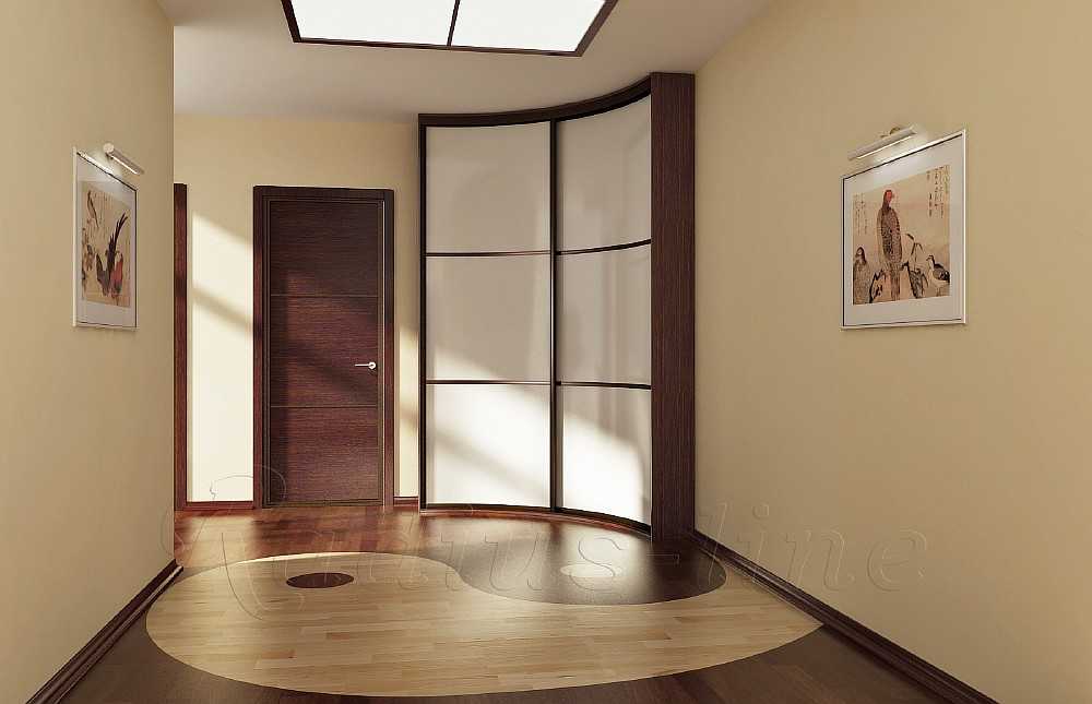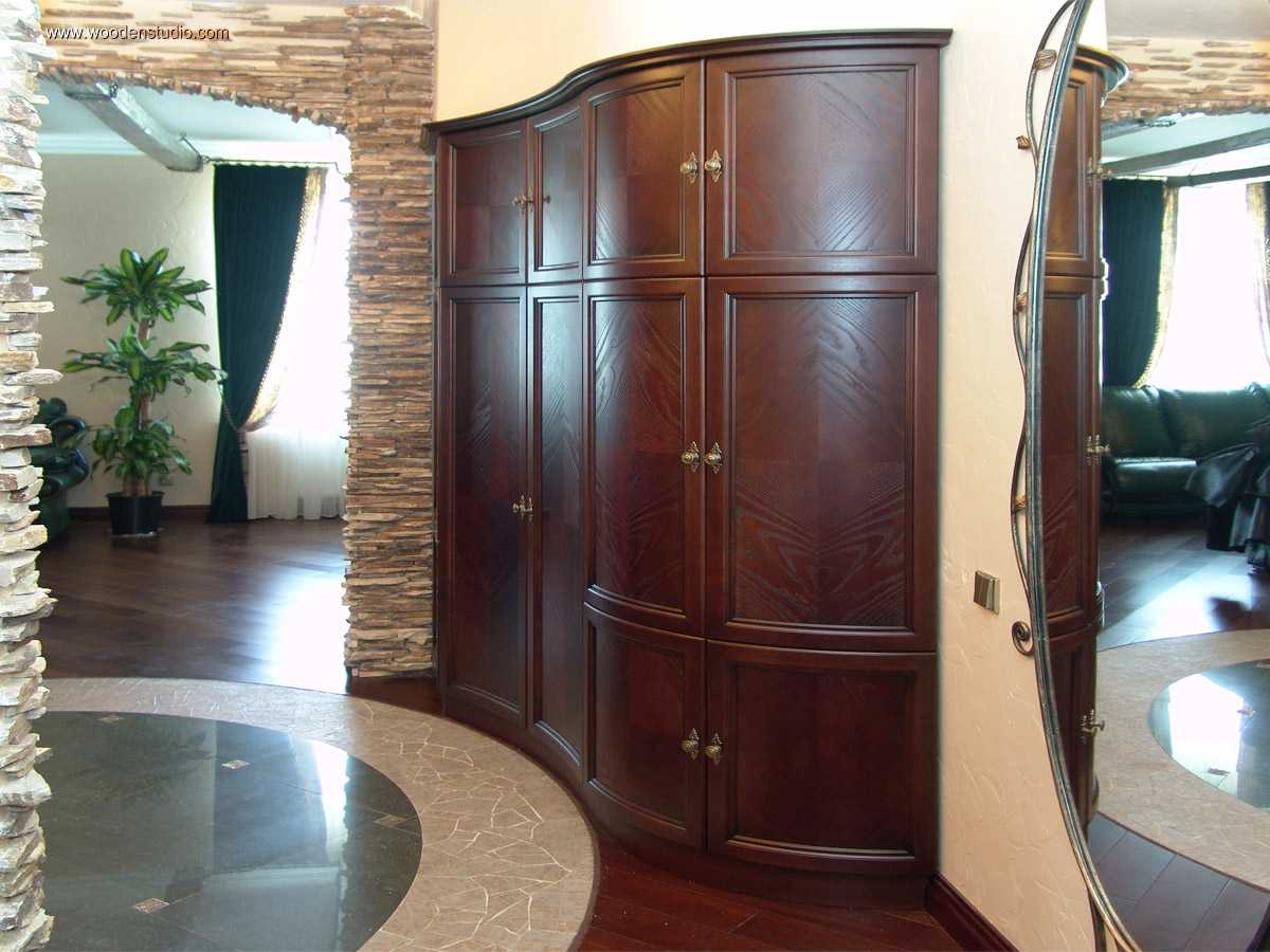 Выпуклые сегменты зачастую используют в прихожей и спальне как небольшую гардеробную.