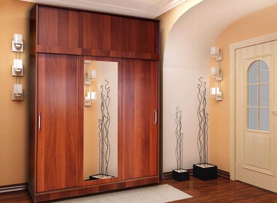 - Трехстворчатая модель не похожа на двухдверные тем, что у нее есть более просторный отсек для верхней одежды и она снабжена выдвижными ящиками внизу. Эти ящики располагаются под нишей со штангой и зачастую служат отличным местом для хранения обуви или различных средств по уходу за вещами. Нередко трехдверный шкаф снабжается зеркалом, которое расположено в средней дверной створке. В подобном случае оба участка под боковыми створками оснащены выдвижными ящиками, и шкаф имеет иное внутреннее устройство.