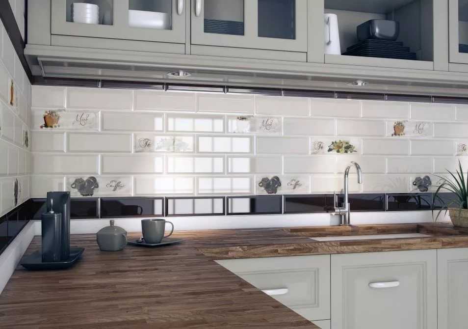 Плитка или пластиковый фартук подбираются по размеру планируемой кухни во избежание зазоров.