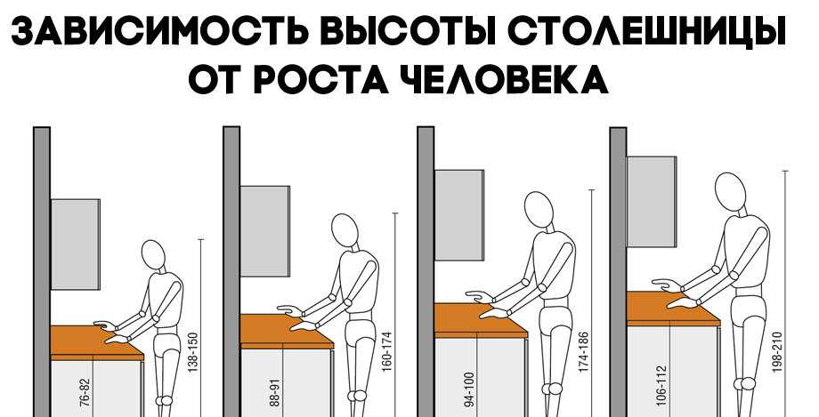 Высоту столешницы и расстояние между ярусами подбираем, исходя из индивидуальных особенностей роста, согласно приведенным выше рекомендациям.