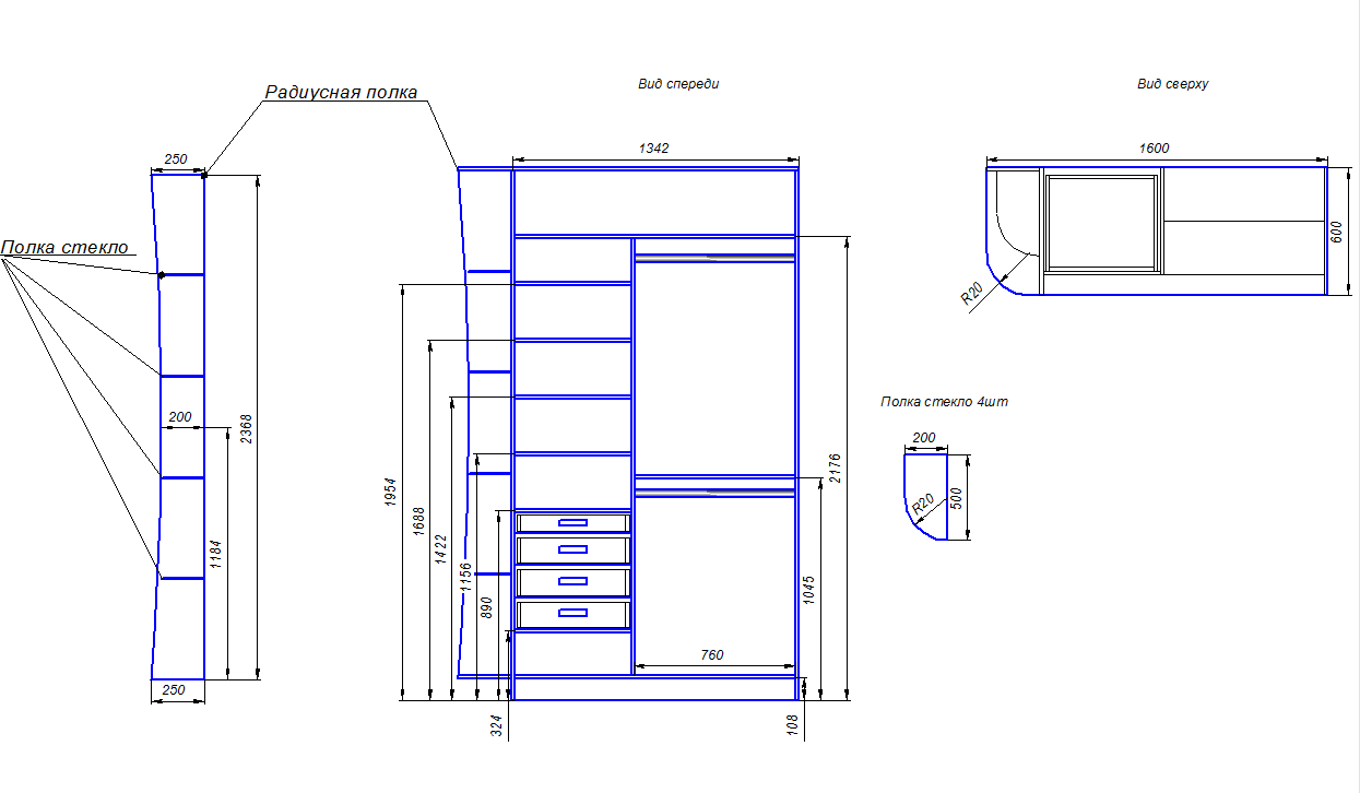 Перед созданием чертежа необходимо определиться с главными характеристиками, которыми будет обладать будущий шкаф-купе:
