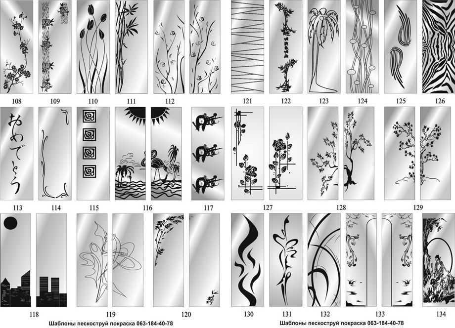 Сам рисунок возможно сделать в различных вариантах – например, матовый на зеркале или же наоборот, из зеркала на матовом (в последнем случае матируют сам фон, а зеркало становится рисунком). Что касается выбора рисунка, то вам предложат просмотреть каталог со стандартными моделями или же вы можете предложить свой вариант. Будьте готовы к тому, что такой вариант матирования обойдется дороже обычных зеркал и стекла, тонированного пленкой