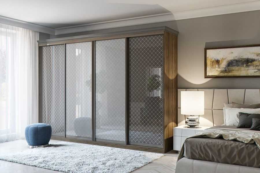 Главным преимуществом заказной мебели является то, что вы самостоятельно сможете выбрать, какой рисунок расположить на стекле шкафа. Например, для гостиной в современном стиле вы можете использовать любые, даже самые смелые сочетания цветов. А вот для спальной комнаты лучше будет использовать более спокойные тона, например золотой, бежевый или другой нюдовый цвет. Матовое стекло с золотыми вставками украсит любую спальную комнату и будет смотреться очень дорого и интересно.