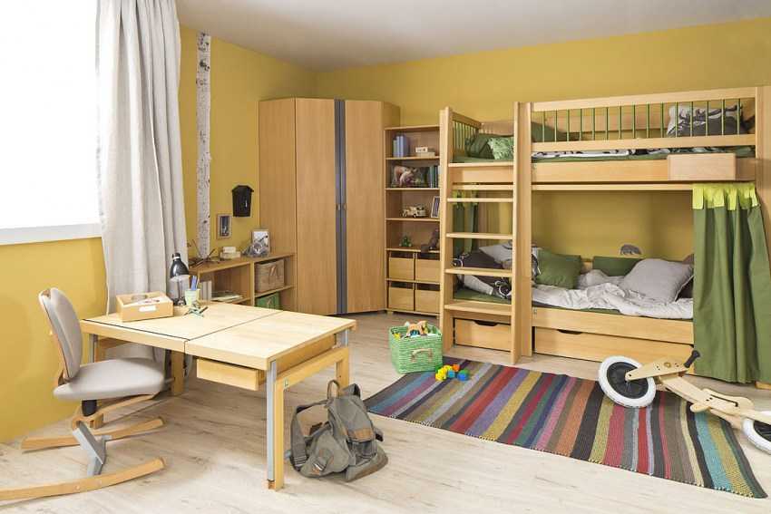Мебель в комнате у детей-непосед должна гармонично сочетаться друг с другом и быть лаконичной.