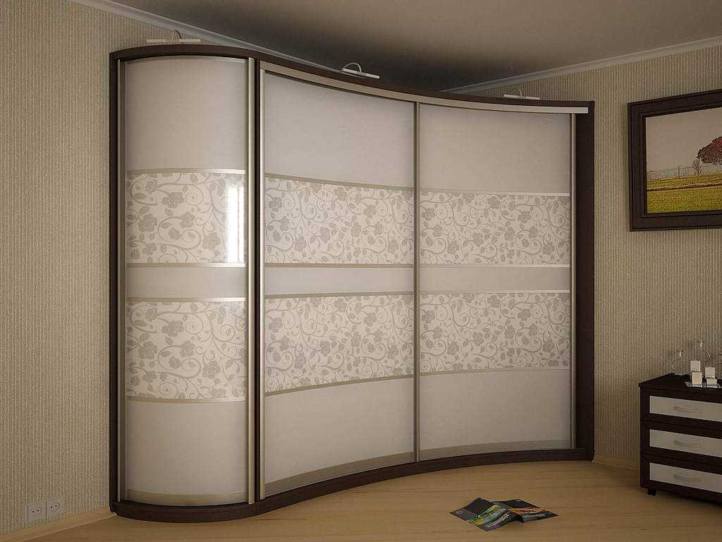 Диагонально-угловой или радиальный шкаф имеет немного выпуклый фасад. Такие «купе» сложнее и дороже линейных моделей, поскольку сложно подогнать кривизну выпуклой дверцы под круглую направляющую. Зато эти конструкции имеют максимальный внутренний объем и красивый фасад. Чаще всего это дизайнерские шкафы-купе.