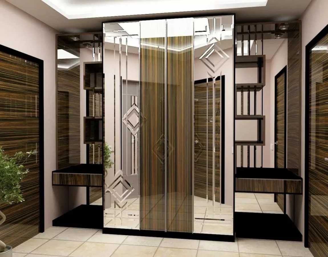 Что касается дизайна шкафа для прихожей, то наиболее популярными считаются конструкции с большими зеркалами. Это очень удобно, так как нет необходимости вешать дополнительное зеркало у входа. Кроме того, такое решение позволяет зрительно увеличить пространство прихожей.