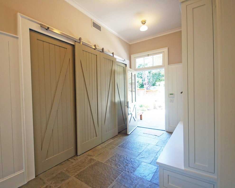 Важно! Обратите внимание на ширину раздвижных створок, она должна быть не более 1 метра. Широкую дверь не только неудобно двигать, но еще можно быстро вывести из строя фурнитуру и направляющие, ведь такая конструкция оказывает достаточно высокую нагрузку.