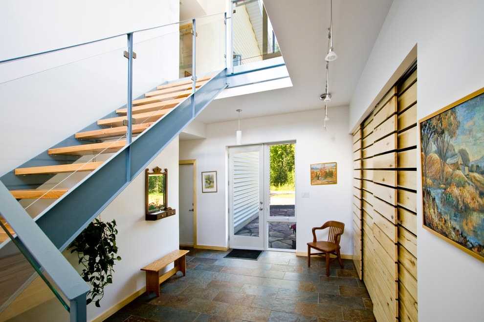 - Под лестницей. Такое решение является простым, стильным, практичным. Прихожая становится предельно функциональной и, одновременно, просторной, место под лестницей эстетично оформлено, лишние метры не использованы.