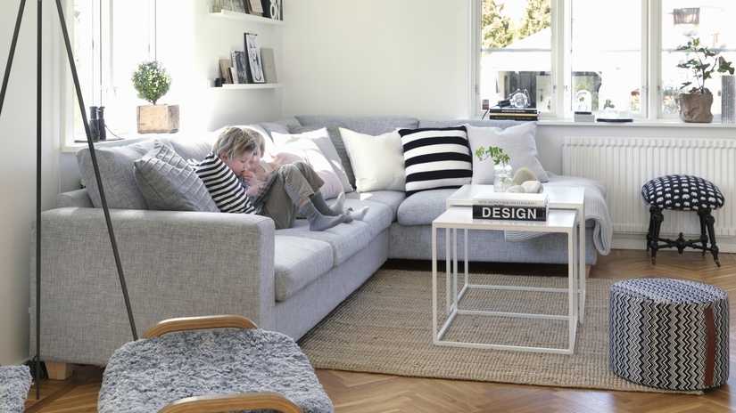 - Модульные угловые модели без подлокотников или со скошенными элементами. Модели декорируются светлыми тканями. Они занимают много места, но обладают хорошей вместительностью;