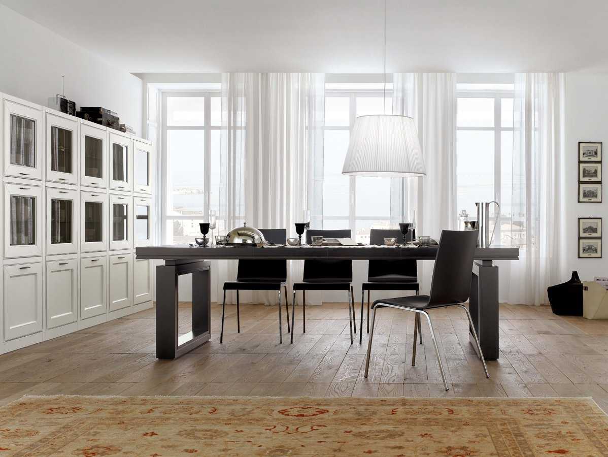 Современные столы могут иметь не только деревянные лакированные столешницы, но и поверхности из цветного пластика, стекла, с имитацией кожи. Для изготовления основного каркаса используют металл, дерево, многослойные элементы, обтянутые кожей. Форма столешницы предлагается круглая, овальная, прямоугольная. Столы современной стилистики имеют разное назначение: они могут использоваться как обеденные для семейных праздников, так и письменные, кофейные или журнальные.