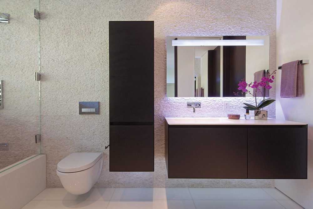 Например, сочетание древесины венге в дизайне ванной комнаты в виде высококачественной напольной плитки и элитной сантехники импортного производства.