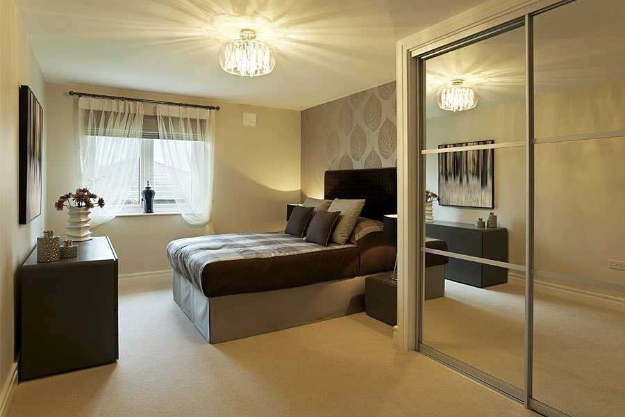 Чтобы украсить спальню красивым шкафом-купе, необходимо позаботиться о грамотном расположении изделия. Установка угловой модели встроенного типа позволит хозяйке создать свой личный будуар. Декоративное украшение створок при этом может быть любым. Допустимо применение как лакобеля, так и фотофасада. Последний привлекает тем, что присутствие в приватном пространстве теплых, семейных фотографий поднимает настроение их обладателям. Впрочем, декором для спальни может служить даже пластиковый шкаф-купе. Никаких ограничений нет. Все на усмотрение владельцев.