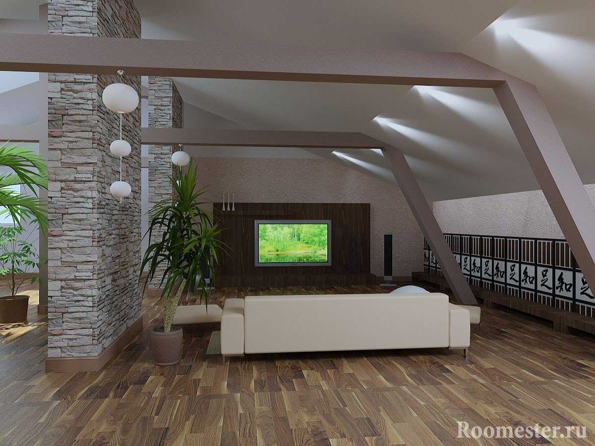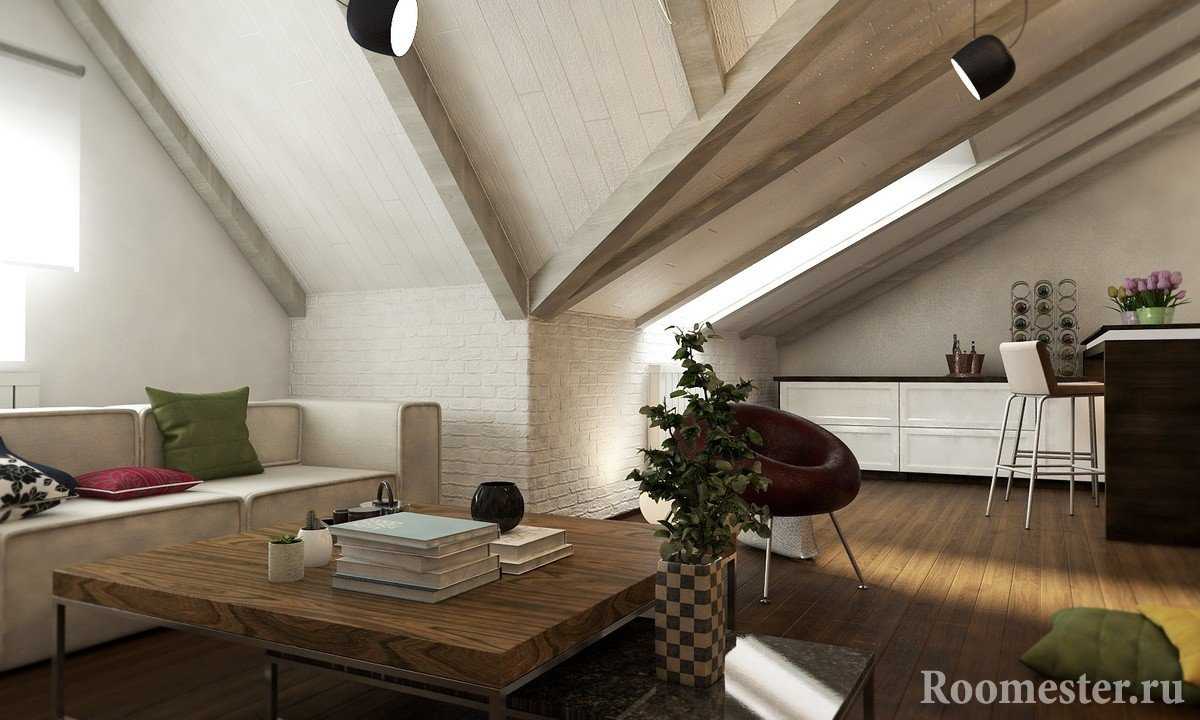 Гостиная в мансардном помещении