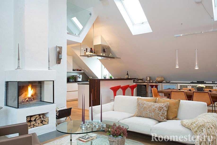 Мансарда является пространством нестандартным. Неординарным людям для создания атмосферы романтики и творчества не вполне подходят подогреваемые полы, электрические радиаторы. Камин может сыграть как чисто практическую роль, так и выполнять сугубо декоративную.